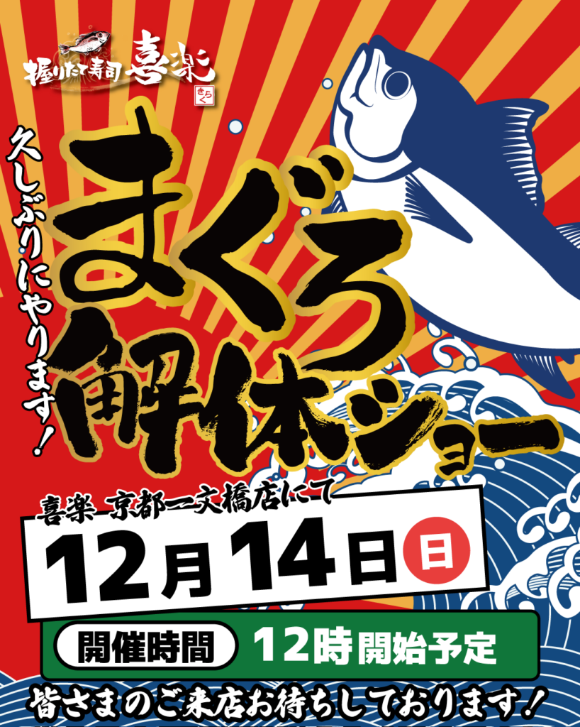 12月14日(日)喜楽 京都一文橋にてマグロの解体ショー!